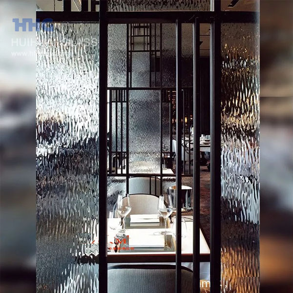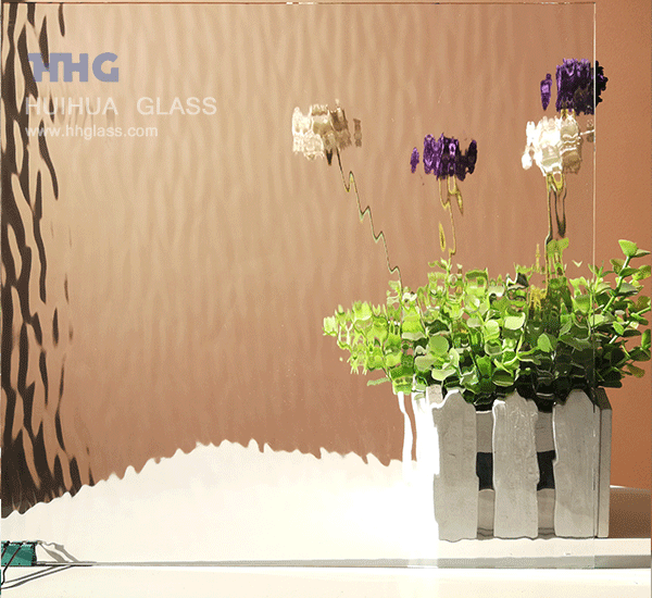 Bieten Sie eine doppelt gewellte, stark wellige Textur als 100wa gemustertes Glas, erhalten Sie ein Bewegungserscheinungsbild, das die Details verzerrt, einen gut aussehenden Hintergrund zeigt. Wird häufig in Einsatzfenstern oder Doppelglasuren für Fenster oder Türen verwendet.