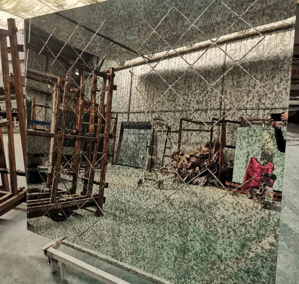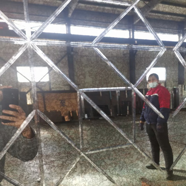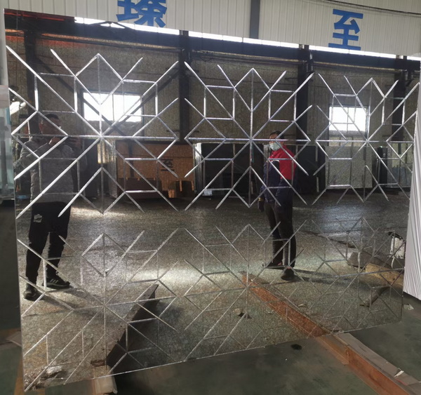 V-Rillen-Glasprozess auf antiken Spiegeln, die produziert Silimar mit Mosaikglas, anstelle von Prozesskanten, spart Arbeit und verkürzt die Dekorzeit.und strahlt Eleganz und Schönheit aus Anzeige, für Duschraum bewerben, Bildschirmanzeige,