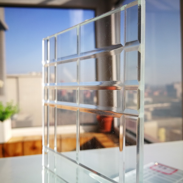 Glas | Normal schweben, wenig Eisen, getöntes Glas, Spiegel und Säure geätzt |