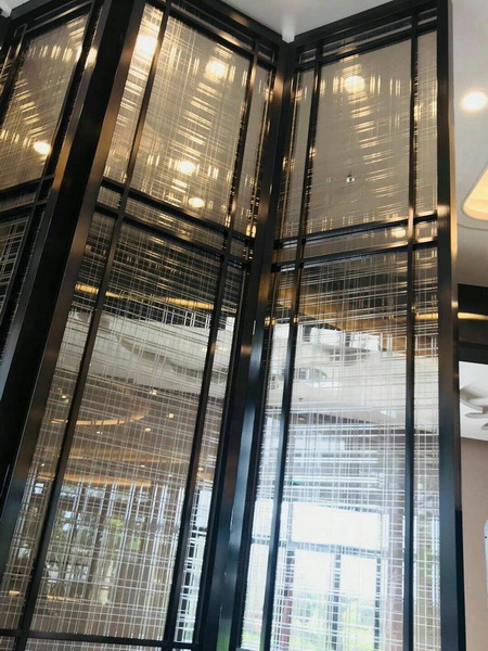 Die Verbundglas wird von zwei Stück poliert gemacht Glas schnitzen, Machen Sie eine Interlaced-Prägung Linien, die aussehen, die nicht in der gleichen Position, ein Gefühl von Raum gewinnen. Es kann von allen Flachglas, wie Float, Eisenmangel, Spiegel und Säure geätzt usw. gemacht werden, mit Stoffen, Metall laminiert machen Mesh oder andere Materialien für einen interessanten Look.