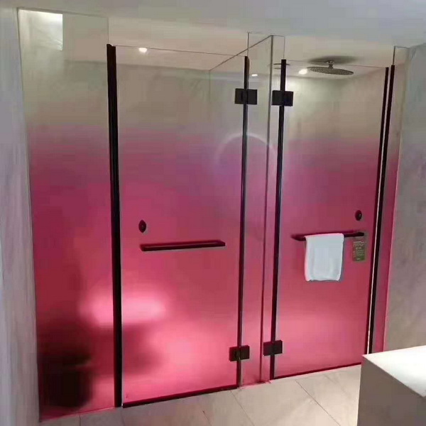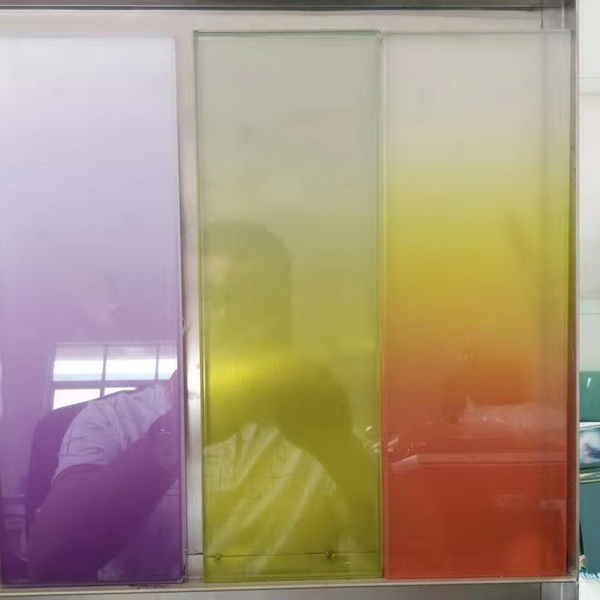 Farbverlaufsglas wird aus laminierten zwei Stück klarem Flachglas hergestellt. Die Zwischenschicht wurde mit der gewünschten Farbe oder dem gewünschten Farbverlauf bedruckt. Die Farbverläufe variieren von matt bis klar. Farbverlaufsglas ist das gleiche wie bei anderen Verbundgläsern. Es handelt sich um Sicherheitsglas wird zusammengehalten, wenn es zerbrochen ist. Die Verlaufsfarbe lässt das Glas ausgefallener und kreativer aussehen. Dieses neue Mode-Milchglas wird für Heimdekoration, Badezimmerglas, Eingang, Hintergrundwand des Fernsehgeräts oder groß verwendet