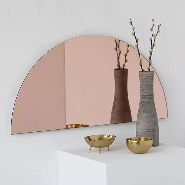 Rosa farbiger Spiegel ist mit rosa Farbe machen Schwimmendes glas, Beschichtungsspiegel auf einer Seite von Glas Oberfläche, Anwendung für Innendekoration oder Außenwandgestaltung, wie Vitrinen, dekorative Wände, Schranktüren, Badezimmer, Möbel und Tische.