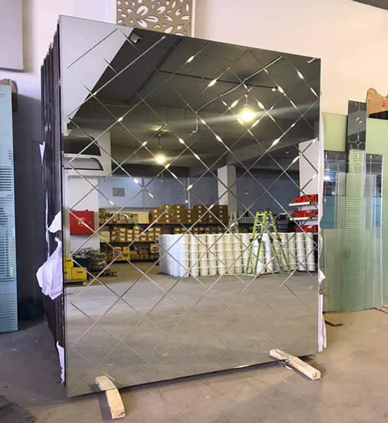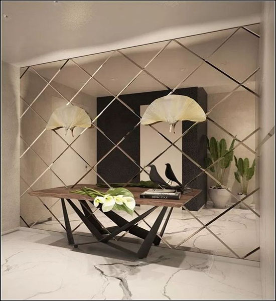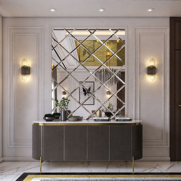 Geschnitzte Diamant-V-Rillenlinien auf klarem Spiegel schaffen ein modisches Dekor,