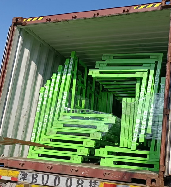 4 Struktur:Dieses Stahlkonstruktionsgestell besteht aus Außenrahmen und Innenträger aus zwei Hauptteilen, die verwendeten Materialien sind aus hochwertigem Kohlenstoff-Baustahl, Zangen-Langkoffer mit den Spezifikationen der Rohre für 50 x 50-Vierkantrohre, Rahmen und Stützen müssen vollständig durchdringt werden in der Struktur, stabile Struktur, die Tragfähigkeit ist größer, halten Sie es mit der Glasoberfläche, die im Artikelschock vorgesehen ist, verhindern Sie, dass das Glas während des Transports beschädigt wird. Gute Verschleißfestigkeit und Korrosionsschutzwirkung