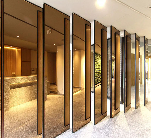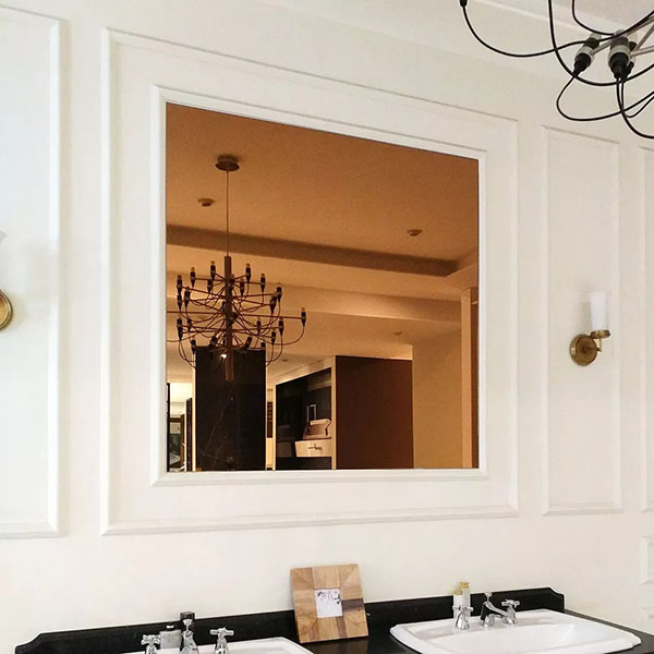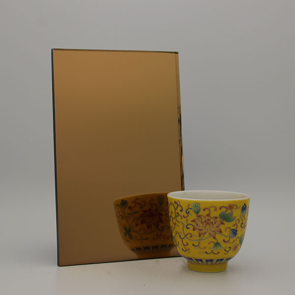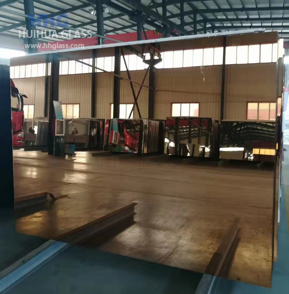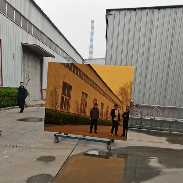 Goldbronze Spiegel ist mit Qualität farbig gemacht Schwimmendes glasWenn Sie eine Seite des Glases mit Aluminium oder Silber beschichten, bilden Sie ein getöntes Spiegelreflexionsbild, das normalerweise in Inneneinrichtungen wie Vitrinen, dekorativen Wänden, Schranktüren, Badezimmern, Möbeln und Tischen verwendet wird.