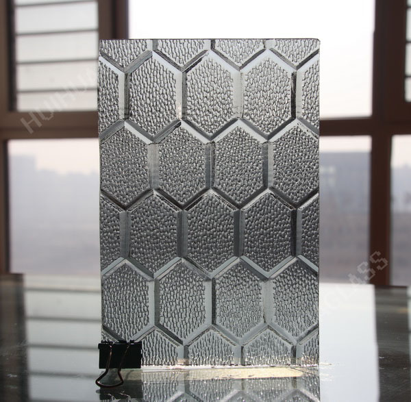 Simulieren Sie den Bienenstock, machen Sie das Muster auf dem Glasscheibe, Erstellt von einer Stahlwalze mit eingraviertem Aufdruck auf einem geschmolzenen Band Glas,