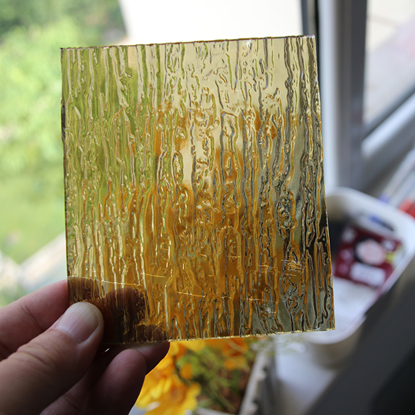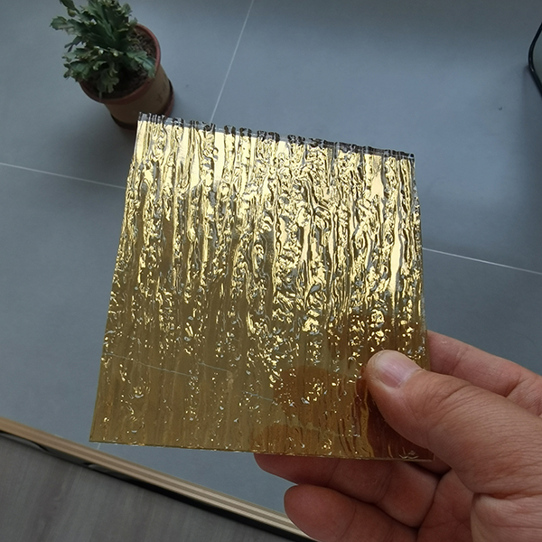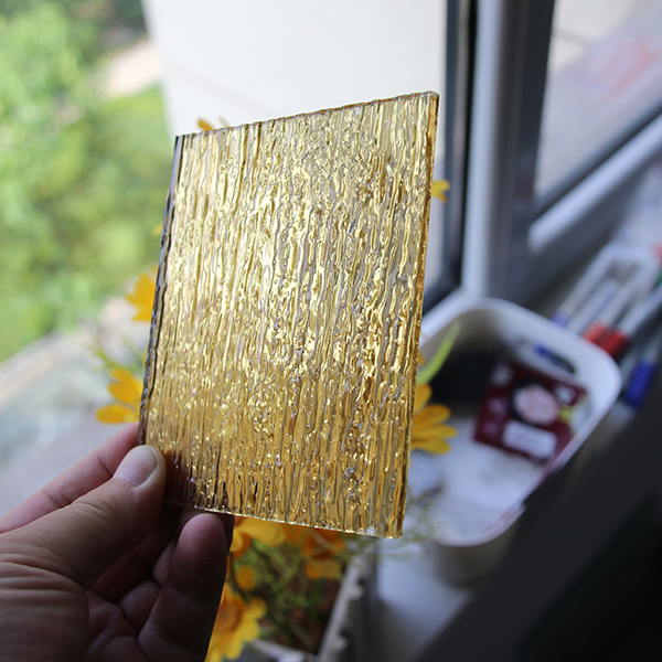 Beschichteter Goldfarbfilm auf der Chinchilla-Glasoberfläche, der mit der Zeit nicht verblasst, kann den Prozess des Schneidens, Temperns oder Laminierens ermöglichen.