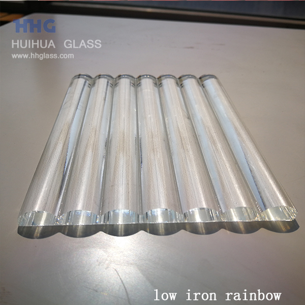Der Regenbogen dieses Hügelmusters bietet eine hervorragende polierte Oberfläche, strukturierte Sicht und Privatsphäre. Dieses Design bietet viele Male Lichtbrechung in Glas, machen Sie eine Vision von Fehler, laminiert zwei Stück Regenbogen Glas könnte kreiert ein neues schönes Muster, das zum Dekorieren von Raumtrennwänden und Bildschirmen verwendet wird.