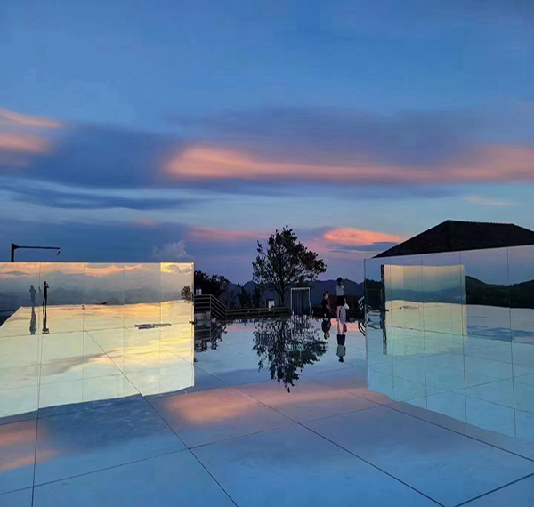 Spiegelplatte ist auch ein wichtiges Element in der Stilindustrie, härtbarer Spiegel wird durch eine spezielle Beschichtungstechnik hergestellt, die gegen atmosphärische Korrosion beständig ist, keine Rückseitenfarbe auf dem Spiegel erforderlich, wie bei normalem Flachglas, es kann geschnitten, kantenverarbeitet, gebogen werden, Laminiert, vor dem Vorspannen bohren und direkt ohne Auftragen von Rückseitenfarbe nach dem Vorspannen installiert werden können, so dass die Probleme gelöst werden, dass herkömmliche Silberspiegel und Aluminiumspiegel gehärtete und schwarze Kanten erscheinen können, gehärtete Spiegel bieten mechanische Festigkeit und Sicherheit und bieten zusätzliche Möglichkeiten der Dekoration Optionen, Reflexionsrate über 90 %, Korrosions-, Oxidations- und Kratzfestigkeit, langlebiger Service. Das Ergebnis erweitert das Anwendungsspektrum von Spiegeln, Anwendungen für Badezimmer, Glasrückwände, Landschaftsbereiche, Tanz-, Handwerks-, Boden-, Wandspiegel, dekorative Spiegel oder laminierte Spiegel, wo Sicherheitsanforderungen usw. bestehen. Die fünften und sechsten Bilder oben sind Designs für Böden am Meer in Yunnan in China。siehe Anwendungsklick Projekte